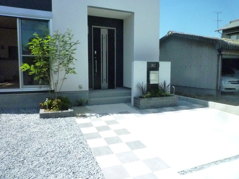 ◆アプローチや門柱は白と黒を基調としモノトーンエクステリア。